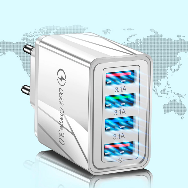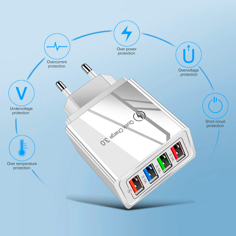 Universal charger that allows you to charge 3 USB devices at the same time. With Quick Charge QC 3.0 makes charging faster.